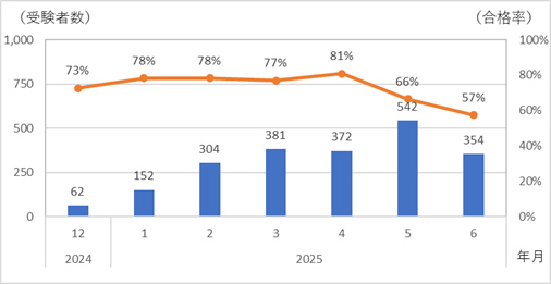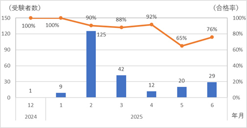 2024年12月から2025年の6月末まで、延べ238人が受験し、合格者数206人(合格率87%)となっています。