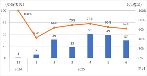 2024年12月から2025年の6月末まで、延べ207人が受験し、合格者数137人(合格率66%)となっています。